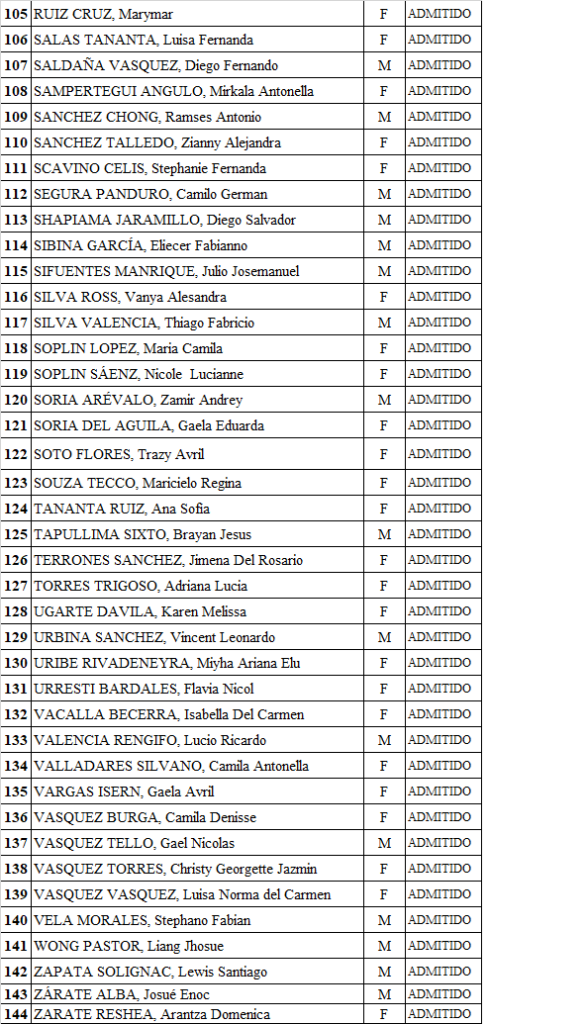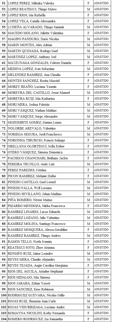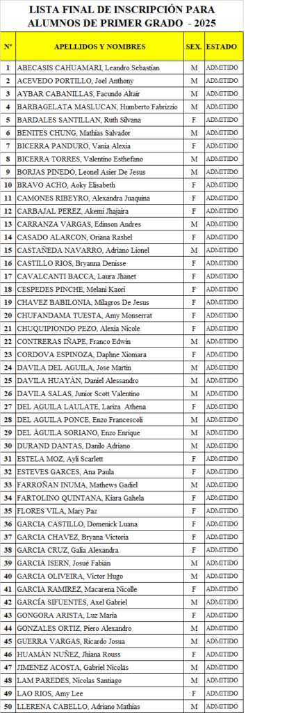 LISTA FINAL DE ALUMNOS PARA EL PRIMER GRADO DE SECUNDARIA 2025 «VIRGEN DE LORETO»