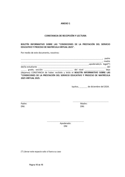 Estimados padres/madres de familia y/o apoderados: